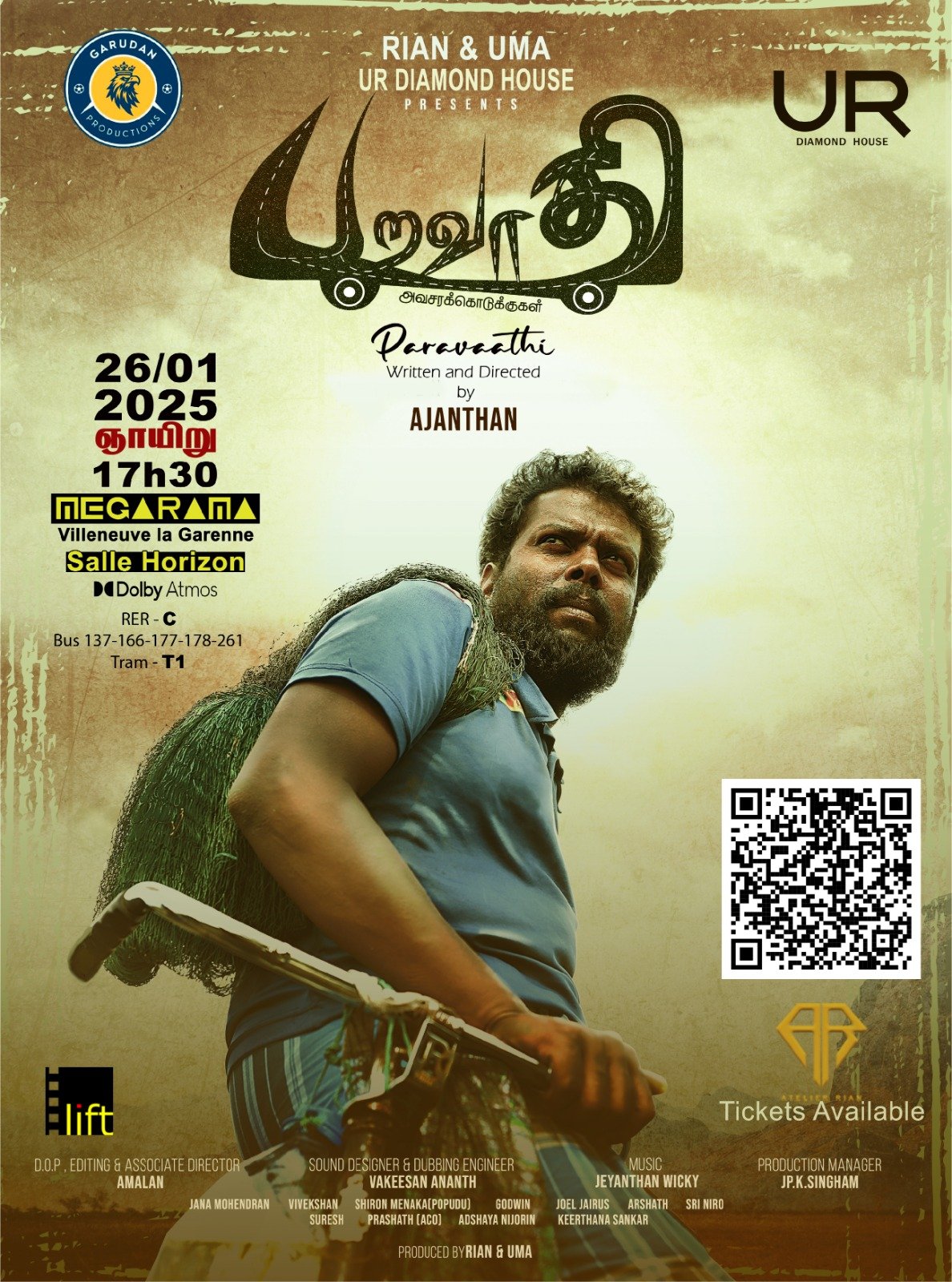 மேலும் பல கல்விமான்கள் மற்றும் செயற்பாட்டாளர்கள் கலைஞர் என பலதரப்பட்டவர்களாலும் பாராட்டை பெற்ற பறவாதி திரைப்படமானது எதிர்வரும் 26/01/2025 ஞாயிறு பிரான்சில் அமைத்துள்ள megaraam (44 Avenue de la Longue Bertrane, 92390 Villeneuve la Garenne) எனும் இடத்தில் 900 இருக்கைகள் கொண்ட திரையரங்கில் முதல்காட்சி காண்பிக்கப்படுகின்றது