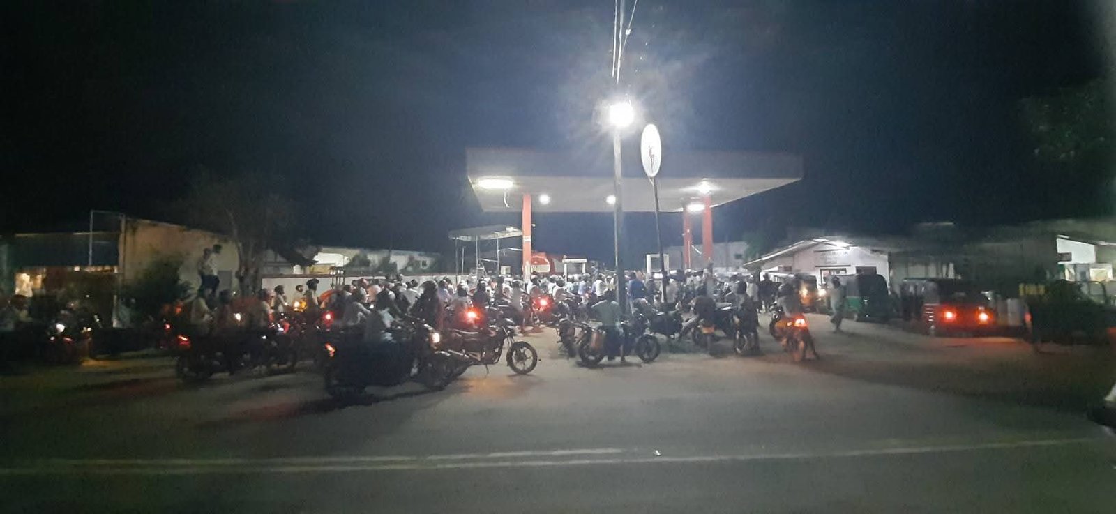 எரிபொருளுக்கு தட்டுப்பாடு நிலவும் எனும் அச்சத்தில் தற்போது எரிபொருளை பெற மோட்டார் சைக்கிள்களிலும் வாகனங்களிலும் முந்தியடிக்கின்றனர்.