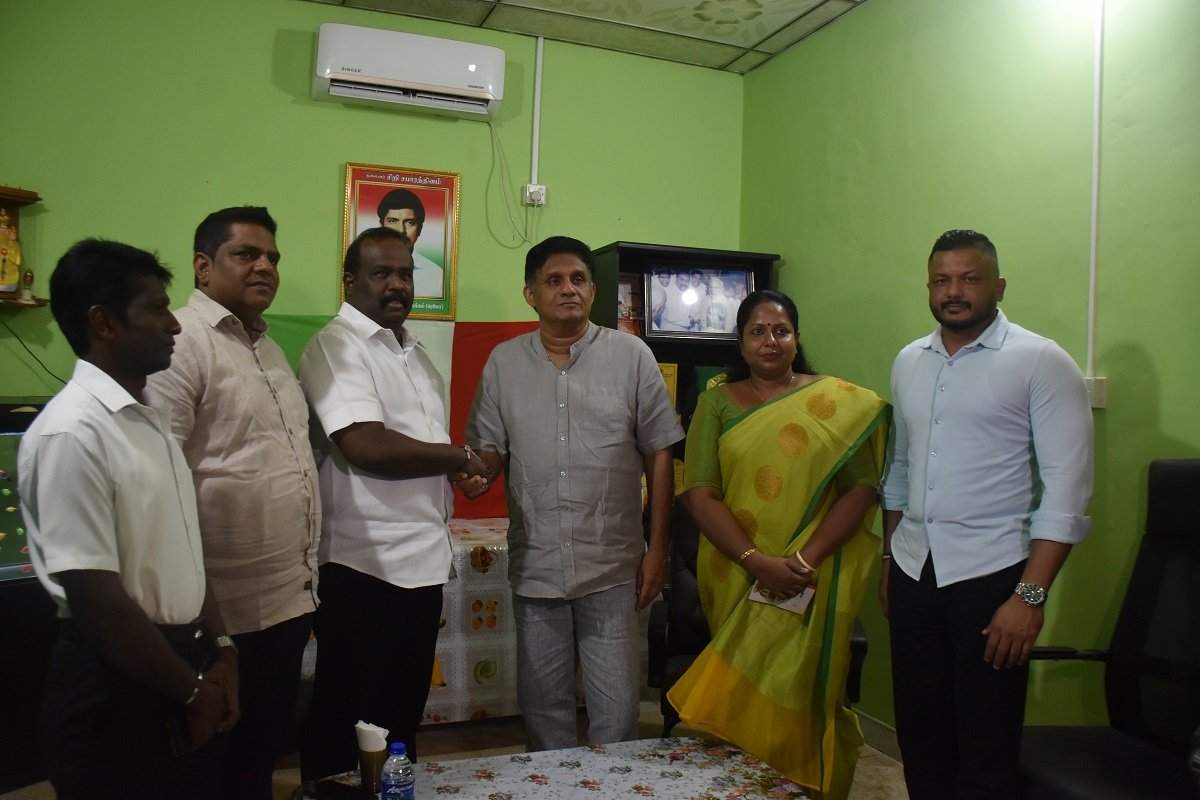 பிரபஞ்சம் ஸ்மார்ட் வகுப்பறைகளை திறந்து வைக்கும் முகமாக மன்னார் மாவட்டத்திற்கு இன்று திங்கட்கிழமை விஜயம் மேற்கொண்டுள்ள எதிர்க்கட்சித் தலைவரும் ஐக்கிய மக்கள் சக்தியின் தலைவருமான சஜித் பிரேமதாச, தமிழீழ விடுதலை இயக்கத்தின் (டெலோ) தலைவரும், தமிழ்த் தேசியக் கூட்டமைப்பின் பாராளுமன்ற உறுப்பினருமான செல்வம் அடைக்கலநாதனை சந்தித்தார்