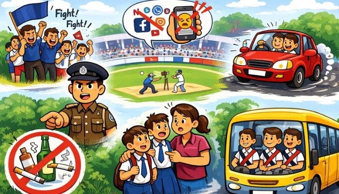 இதற்கமைய, பிக் மேட்ச் நடைபெறும் காலப்பகுதியில் பாடசாலை மாணவர்கள் மற்றும் விசேடமாகப் பெற்றோர்கள் கவனம் செலுத்த வேண்டிய பல விடயங்களைப் பொலிஸார் பின்வருமாறு பட்டியலிட்டுள்ளனர்: