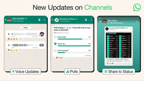 இரண்டாவதாக, சேனல்களில் பகிரப்படும் புகைப்படங்களை பயனர்கள் தங்களின் ஸ்டேட்டஸில் நேரடியாக பதிவிடும் புதிய வசதியை வட்ஸ் அப்பில் மெட்டா நிறுவனம் அறிமுகப்படுத்தியுள்ளது.